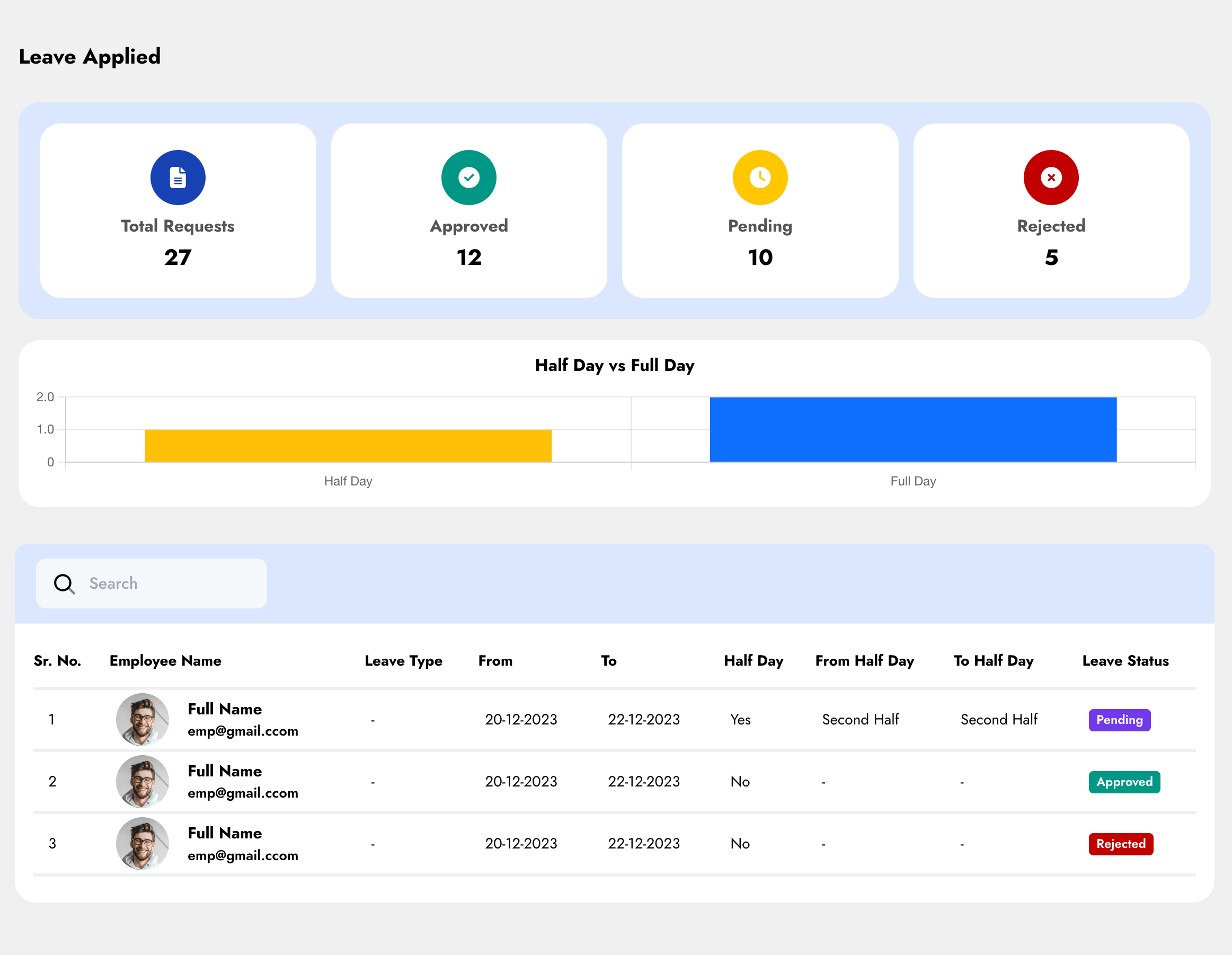 Managers/Reporting heads can view and approve/reject the leave applications from both mobile app as well as web app as and when submitted. Their approval or rejection on the leave applications (along with the reason) get instantly visible and notified to the users who can then re-submit the applications for different dates when rejected.