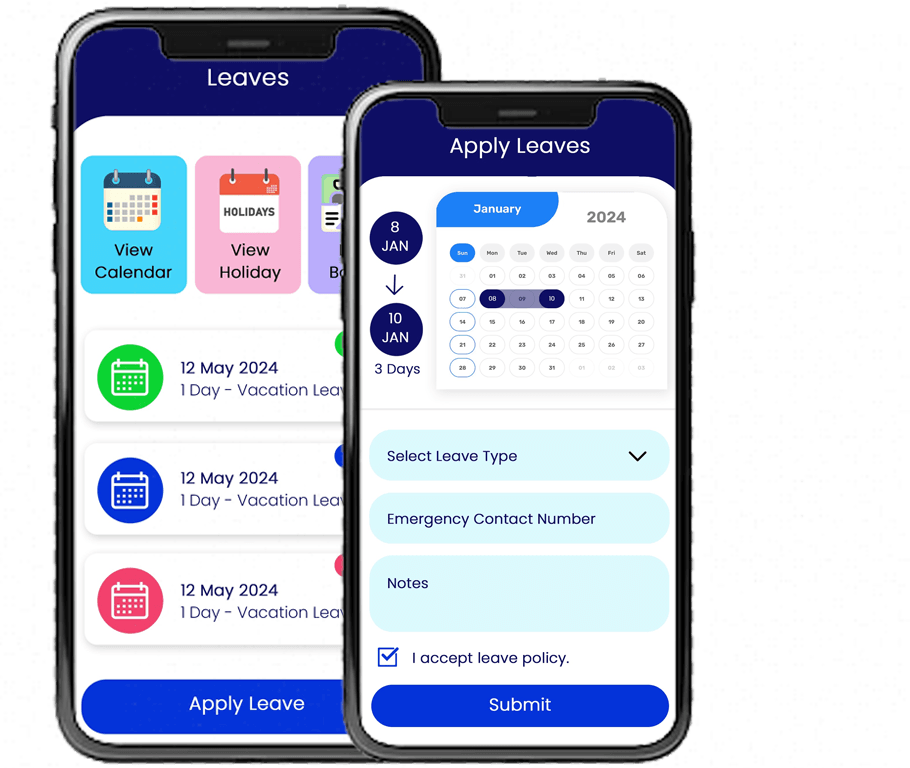 module - company holidays, leave types, leave entitlement and more. And incorporates intuitive, self-service workflows to let your staff keep track of their leaves right from their mobile devices.